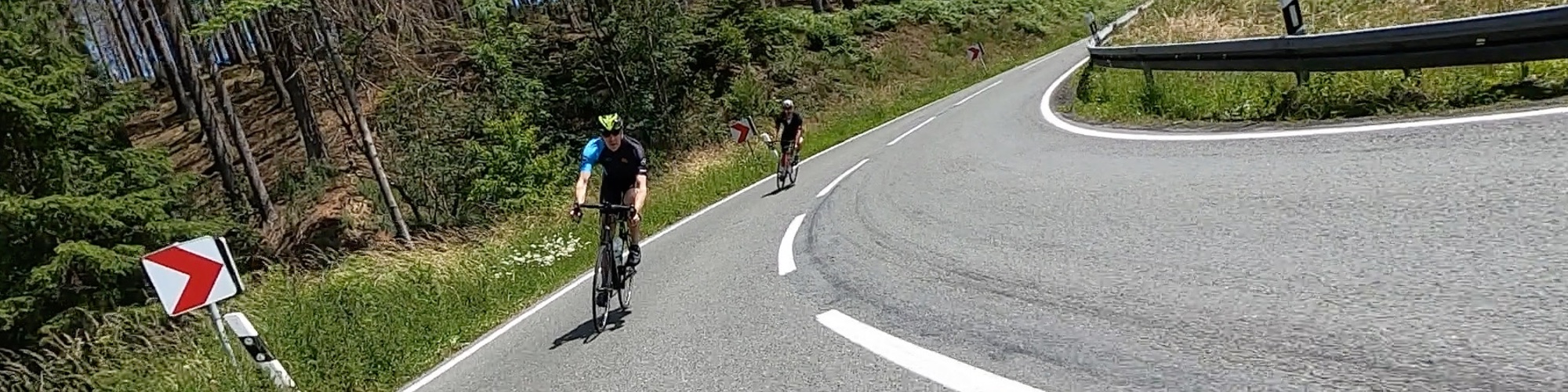 Erste Umleitung am Möhnesee. Der östliche Damm ist gesperrt, also geht es direkt über Arnsberg nach Meschede. In Meschede dann auf den schönen Radweg am Hennesee und von dort aus weiter in Richtung Winterberg. Kurz davor erwartet uns die zweite Umleitung. Die zusätzlichen Kilometer sind weniger schlimm als die Tatsache, dass wir uns auf einmal auf der "Autobahn" nach Winterberg befinden. Etwas später lassen wir auch diese hinter uns und fahren am Dirt Bike Festival vorbei nach Schmallenberg.
