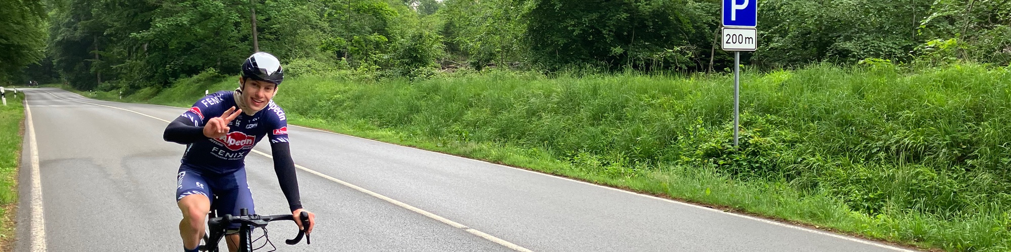 Kurz hinter Schmallenberg bei km 160, leeren Flaschen und immer leerer werdenden Trikottaschen gibts dann leckere Pommes am Road Stop. Kurze Pause und dann erstmal wieder warm werden. Immer weiter entlang der Lenne bis nach Lennestadt. Dort dann die zweite Umleitung über eine 15% Steigung. Leider sind wir am Ende der Straße in die falsche Richtung abgebogen, was die Tour um ca. 40km verlängerte aber immerhin den Zugang zu einem wunderschönen Radweg ermöglicht hat.