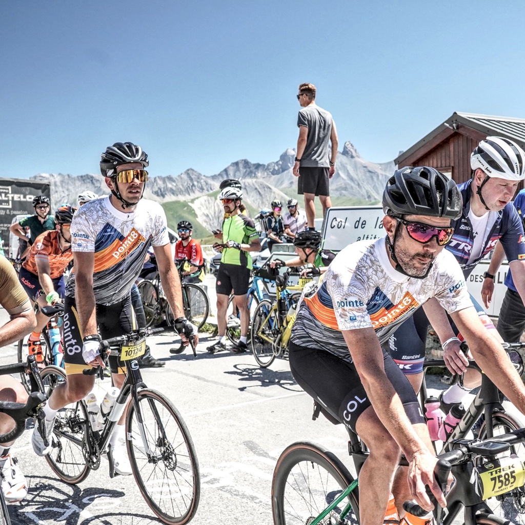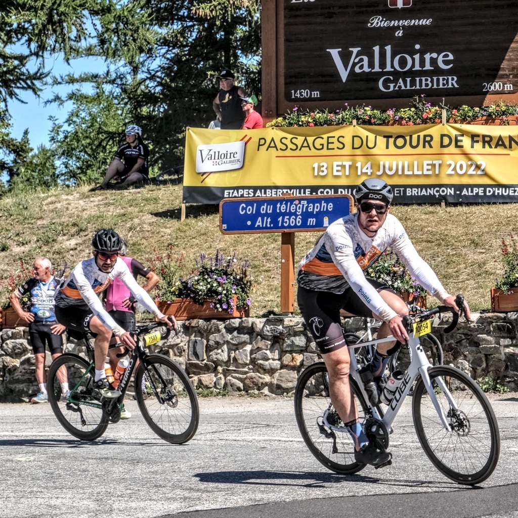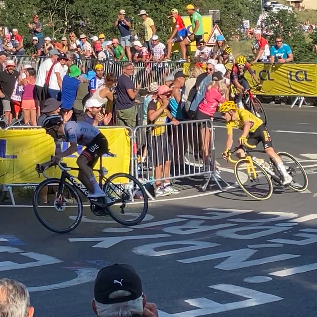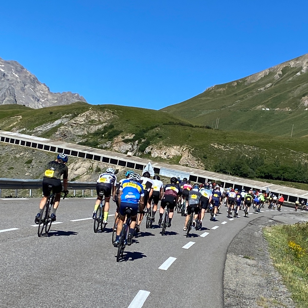 Die Abfahrt vom Col de la Croix de Fer mündet schon weit oben in den Col de Glandon. Diese Strecke waren wir schon beim Marmotte vor einer Woche bergauf gefahren und konnten recht dankbar sein einige der Schlüsselstellen zu kennen. Denn obwohl, wie überall sonst auch, die Gefahrenstellen perfekt von Streckenposten mit Pfeife und Fähnchen gesichert waren, musste ich in der ein oder anderen Kehre härter bremsen als ich zunächst wollte. Die Kurven sind eng und hängen teilweise, gefolgt von schier endlosen steilen und geraden Stücken. Richtig interessant sind zudem die zwei Gegenhänge, die die gebeutelten Oberschenkel fast zum Explodieren bringen.