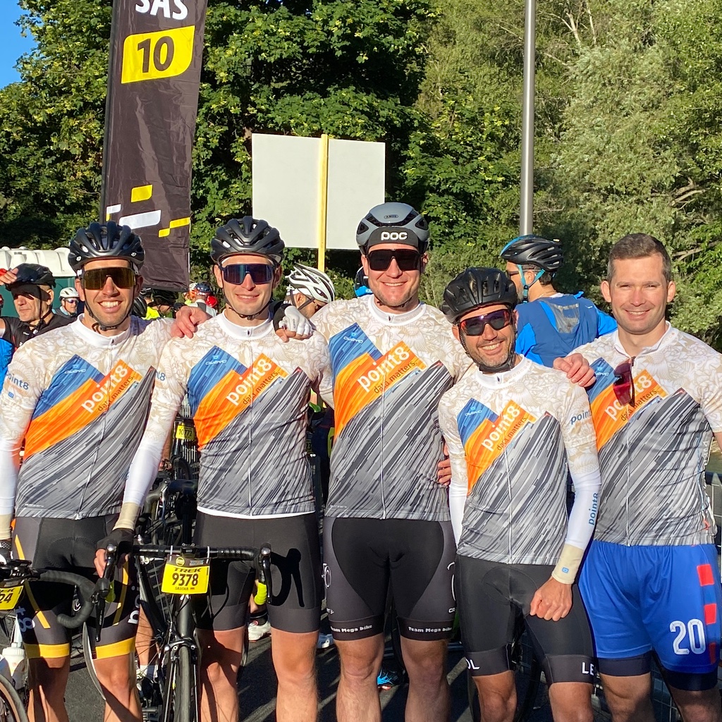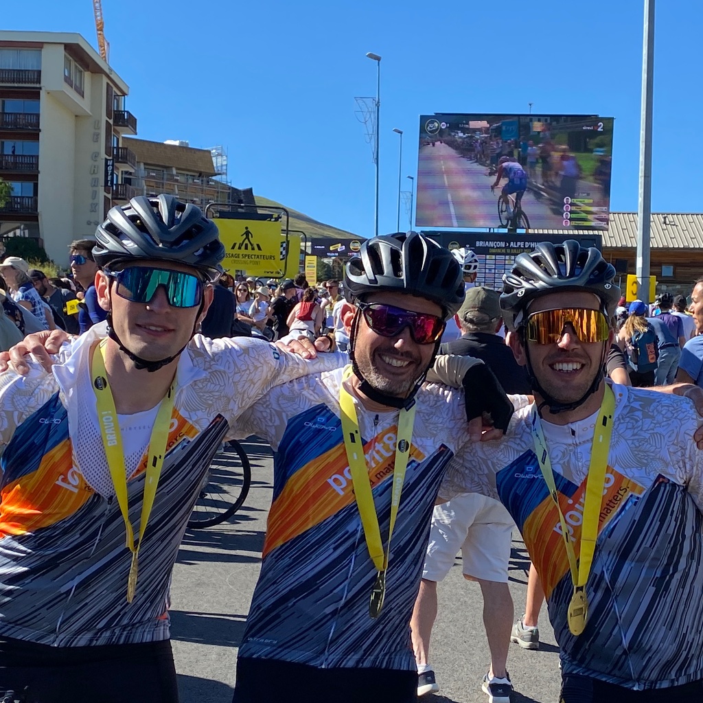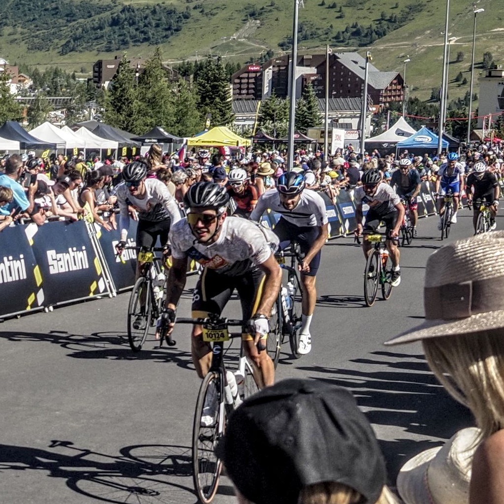 Glücklicherweise hatten wir auf dem Flachstück nach Huez Rückenwind. Arbeiten wollte trotzdem niemand. Kurzerhand führten Sascha und ich die Gruppe bis nach Bourg d'Oisans und holten auch Thomas wieder ein, der uns auf der Abfahrt enteilt war. Die letzten Verpflegungsstation. 32°C im Schatten. Die Alpe wartet.