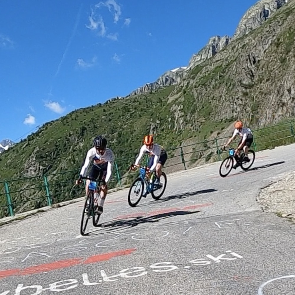 Natürlich hatten alle gewissenhaft für das Ereignis trainiert. So stehen dann erstmal ein paar lockere Aufwärmkilometer rund um Alpe d'Huez an. Das Problem: Am Ende der Tour müssen wir immer wieder nach oben. Am ersten Tag fahren wir über den fast 2000m hohen Col de Sarenne und erleben ein paar großartige Ausblicke von den in den Fels gehauenen Straßen aus. Am zweiten Tag machen wir uns mit den oberen Kurven der Alpe vertraut. Ein kleines Bisschen Tempo oder auch nur ein lockeres Rollen in der Höhe. Wir sind aufgeregt, morgen geht es los.