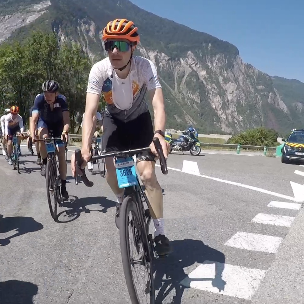 In jedem Rennen kommt irgendwann der Punkt an dem man die eigene Motivation mit seinen körperlichen Möglichkeiten abgleichen muss. Wir kommen zu fünft aus der Abfahrt des Mollard und finden uns auf den wenigen flachen Kilometern im Maurienne Tal wieder. Die Gruppen hier sind in Erwartung des Anstiegs zum Col du Galibier meist aufregend langsam unterwegs. Niemand möchte so richtig gerne die Nase in den Wind halten. Der Abgleich liefert unterschiedliche Ergebnisse in unserer Gruppe und zum ersten Mal verlieren wir uns. Mich erwartet das nächste Wasserloch im Maurienne Tal. Bis zur nächsten Verpflegung sind es noch 1000 Höhenmeter. Vor uns liegt der Col de Télégraphe. Die erste Hälfte auf dem Weg zum Galibier.